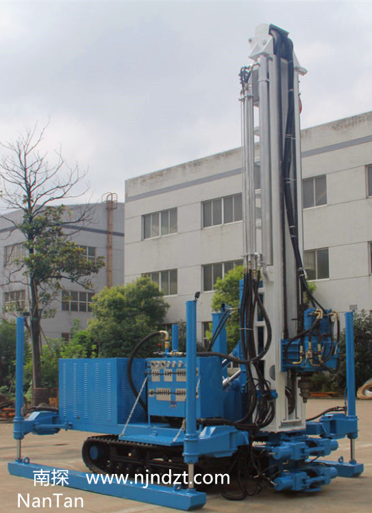 該鉆機(jī)最大特點(diǎn)為動(dòng)力頭行程為5米,配備有大扭矩液壓馬達(dá)回轉(zhuǎn)、油缸推進(jìn)及提升能力大。配有液壓伸縮隨手吊車和液壓卷揚(yáng)機(jī),減輕勞動(dòng)強(qiáng)度。動(dòng)力頭具有多種速度,使得鉆孔范圍更寬。液壓支腿行程大,不需吊車鉆機(jī)即可轉(zhuǎn)場(chǎng)裝卸。