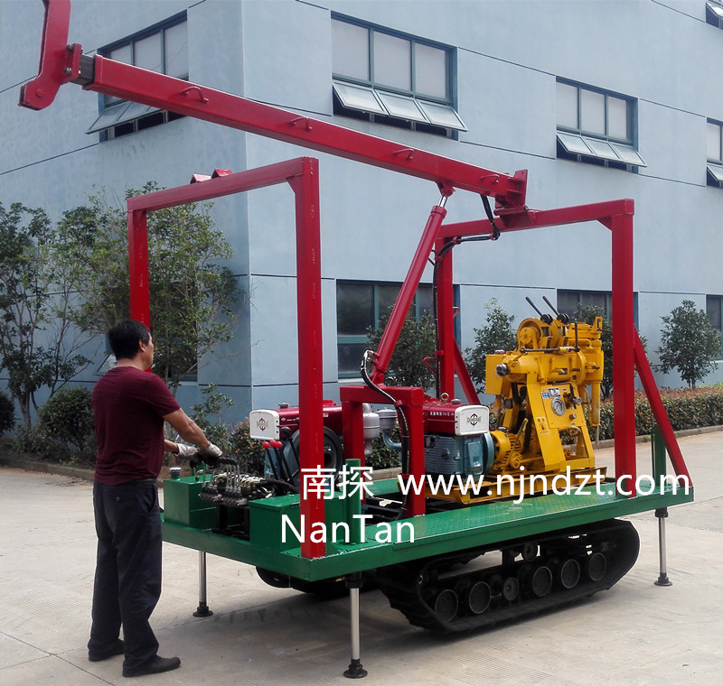 一、適用范圍:該履帶底盤承載重量達(dá)4T,可以裝載各種小型鉆機(jī),如:XY-1-1、XY-1、XY-1A、XY-1A(YJ)、XY-1A-4、XY-1A-5、XY-1B、XY-1B-1、XY-1B-2、XY-200、XY-200(YJ)、XY-200B、XY-200B-1、XY-200B-2、XY-200B-3、GXY-1、GXY-1A、GXY-1B、GXY-1C、GXY-2K、GXY-2Q、GXY-200B、GYQ-200、GYQ-200A、GXY-2C、GK180、KD100-4、KD150等,并可同時(shí)裝載BW160、BW160A、BW200或BW200A型泥漿泵,具有液壓起落鉆塔、行走方便等特點(diǎn),廣泛適用于公路、鐵路、水電、橋梁、壩基等的工程地質(zhì)勘察、地質(zhì)巖芯鉆探、物理勘察、小型灌漿孔、爆破孔、水井孔和空調(diào)孔的鉆進(jìn)。