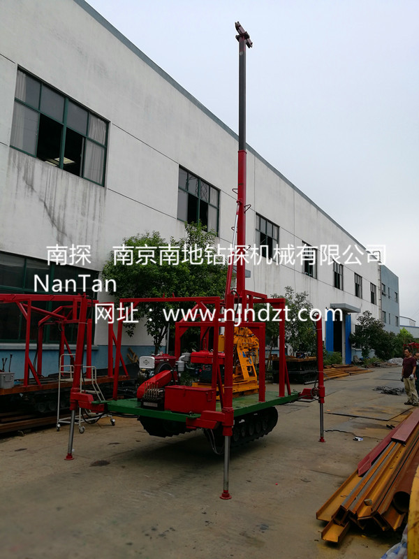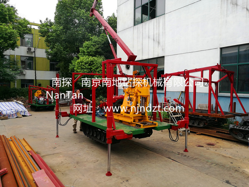 該履帶底盤承載重量達4T,可以裝載各種小型鉆機,如:XY-1-1、XY-1、XY-1A、XY-1A(YJ)、XY-1A-4、XY-1A-5、XY-1B、XY-1B-1、XY-1B-2、XY-200、XY-200(YJ)、XY-200B、XY-200B-1、XY-200B-2、GXY-1系列、GXY-2Q、GXY-200B、GYQ-200、GYQ-200A、GK180、GXY-2K、GXY-2C等100-300米鉆機,并可同時載BW160、BW160A、BW200或BW200A型泥漿泵,具有伸縮式液壓起落鉆塔、行走方便、上下汽車安全等特點,廣泛適用于公路、鐵路、水電、橋梁、壩基等的工程地質(zhì)勘察、地質(zhì)巖芯鉆探、物理勘察、小型灌漿孔、爆破孔、水井孔和空調(diào)孔的鉆進。