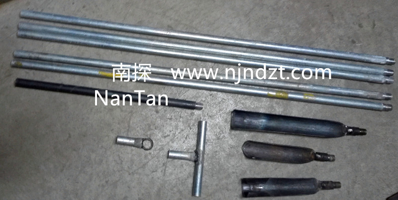一段有柄,可以接長的白蠟桿。使用時垂直向下戳擊地面,可深逾20米,利用半圓柱形的鏟可以將地下