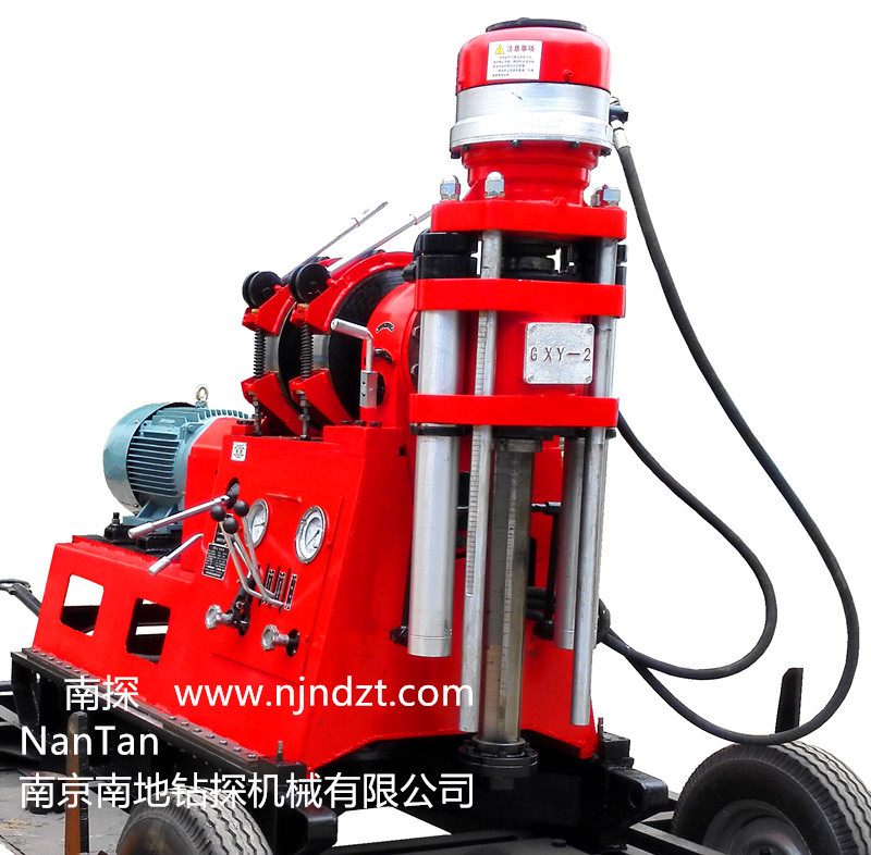GXY-2型巖芯鉆機(jī)設(shè)計(jì)先進(jìn),布局合理、結(jié)構(gòu)緊湊,操作靈活、堅(jiān)固耐用,可拆性好,便于搬遷、修理方便。主要用于地表及坑道對(duì)固體礦床的金剛石、合金鉆探,可用于工程地質(zhì)勘察及地下水勘探,淺層石油,探礦、天然氣勘探、水文、水井、堤壩灌注、坑道通風(fēng)、排水鉆探等工程孔鉆進(jìn)以及小型鉆機(jī)灌注樁孔鉆進(jìn)施工等。