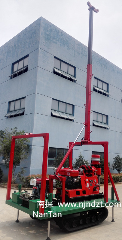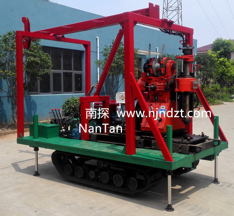 該履帶底盤承載重量達4T,可以裝載各種小型鉆機,如:XY-1-1、XY-1、XY-1A、XY-1A(YJ)、XY-1A-4、XY-1A-5、XY-1B、XY-1B-1、XY-1B-2、XY-200、XY-200(YJ)、XY-200B、XY-200B-1、XY-200B-2、GXY-1系列、GXY-2Q、GXY-200B、GYQ-200、GYQ-200A、GK180、GXY-2K、GXY-2C等100-300米鉆機,并可同時載BW160、BW160A、BW200或BW200A型泥漿泵,具有可調(diào)伸縮式液壓起落鉆塔、行走方便等特點,廣泛適用于公路、鐵路、水電、橋梁、壩基等的工程地質(zhì)勘察、地質(zhì)巖芯鉆探、物理勘察、小型灌漿孔、爆破孔、水井孔和空調(diào)孔的鉆進。