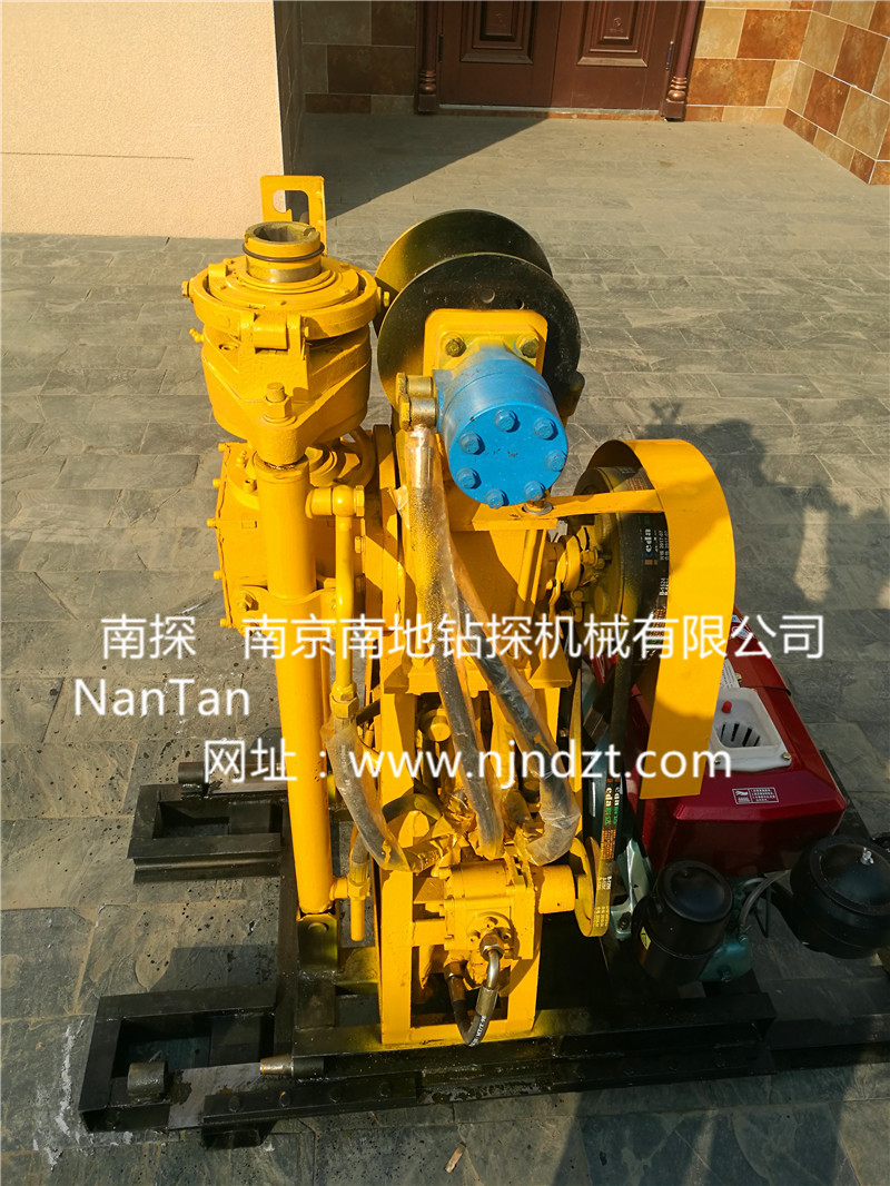 NTQZ-50B型鉆機(jī)是一種具有油壓給進(jìn)的輕便鉆機(jī),配置移位底座、液壓卷揚(yáng)機(jī)、4.5米高三角架鉆塔。額定鉆孔深度50米,最大開孔直徑允許為110mm,終孔直徑為75mm,孔徑46-200mm配套鉆進(jìn)深度根據(jù)地層情況而定。既可以旋轉(zhuǎn)、 沖擊鉆進(jìn)取土取芯樣,也可以旋轉(zhuǎn)鉆進(jìn)不取心鉆孔,比如鉆孔灌漿、引孔等。